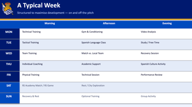 Vive, entrena y compite dentro de la estructura oficial de la academia durante 1 mes, 5 meses o temporada completa.